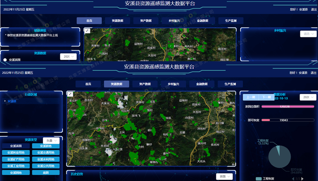 依据乡村振兴建设主导思想,打造集综合性服务门户、乡村文明文旅、社会化服务、自然资源管理、智慧农业、产业数字化、人才数字化、宅基地管理、三资管理以及数字乡村博物馆等矩阵,利用天、空、地一体化数字结合,全面实现美丽乡村数字化提升……